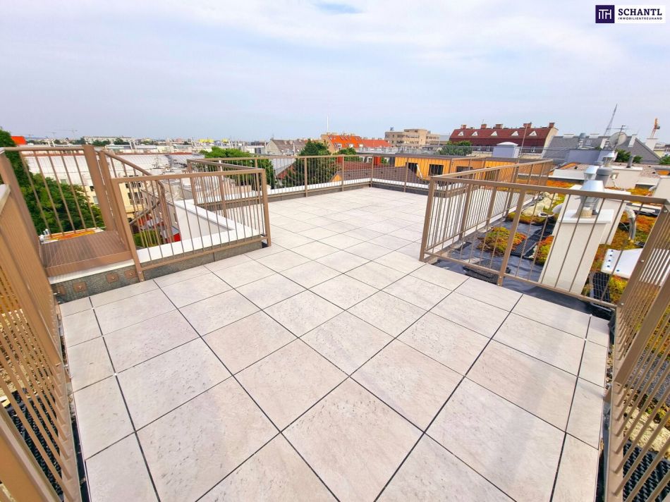 Ihre neue Traumwohnung wird Sie restlos begeistern und teilt sich einen geräumigen Vorraum mit Platz für eine Garderobe, einen riesigen und nahezu zur Gänze uneinsichtigen Wohn-Essbereich mit Zugang zu 2 Terrassen, 4 getrennt begehbare Schlafzimmer, wobei eines einen eigenen Schrankraum besitzt, 2 großzügige Bäder mit Fenster, Dusche, Badewanne und WC, ein separates WC, einen praktischen und super großen Abstellraum sowie das Highlight der Wohnung - eine riesige Dachterrasse mit einem 360Grad Rundumblick.