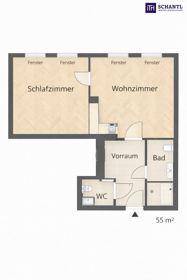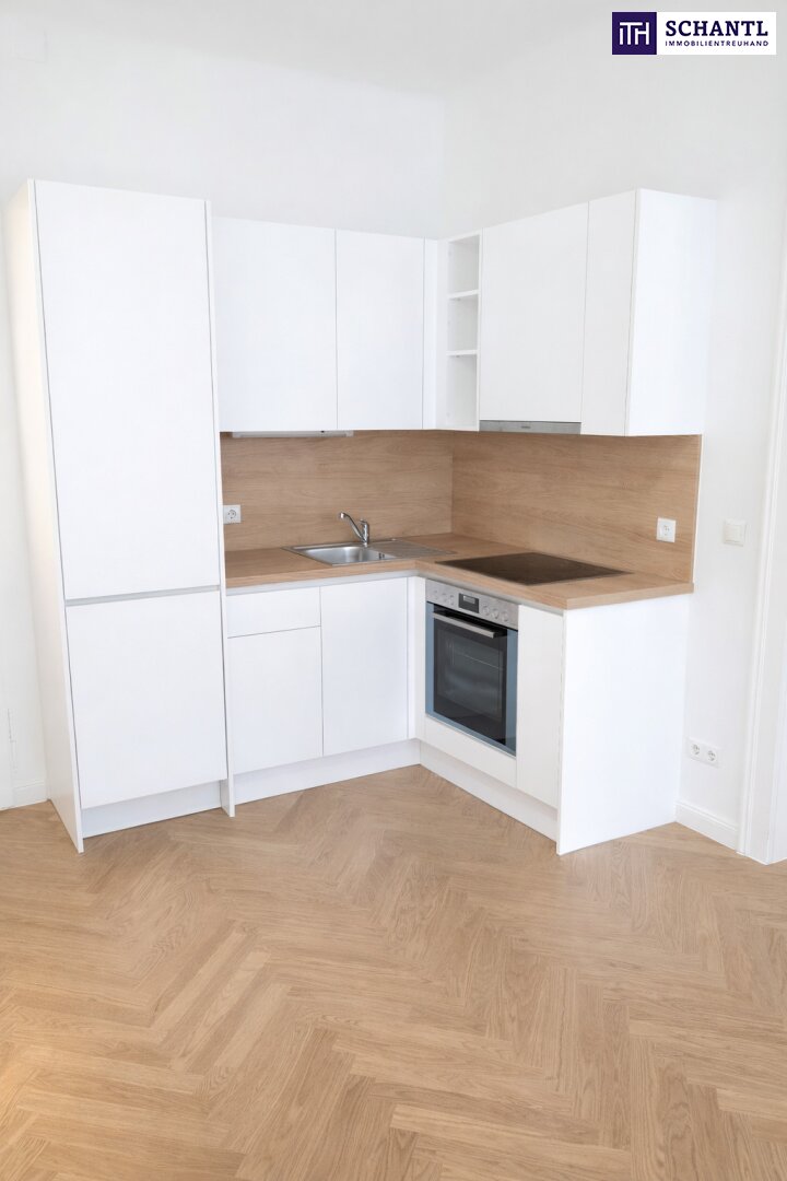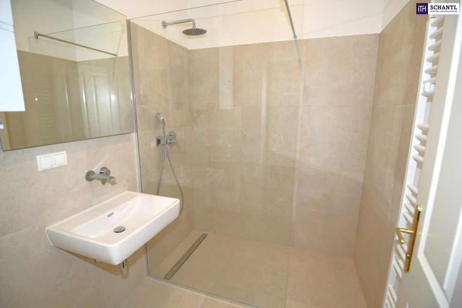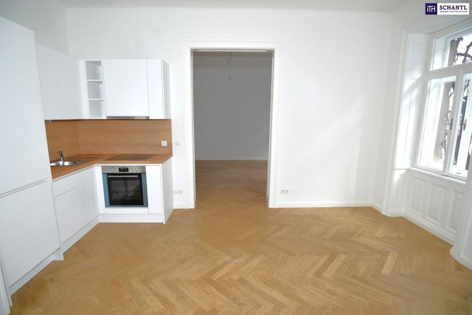 Highlights wie Fischgrätparkett, klassische Flügeltüren und eine großzügige Raumwirkung unterstreichen den besonderen Altbaucharakter. Die Wohnung verfügt über zwei helle Zimmer, eine moderne Einbauküche mit Bosch-Markengeräten, ein elegantes Bad mit barrierefreier Dusche und Fußbodenheizung, separates WC, sowie einen großen Abstellraum mit Waschmaschinenanschluss. Ein Kellerabteil ist ebenfalls vorhanden.