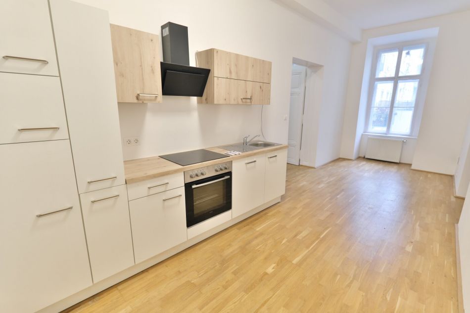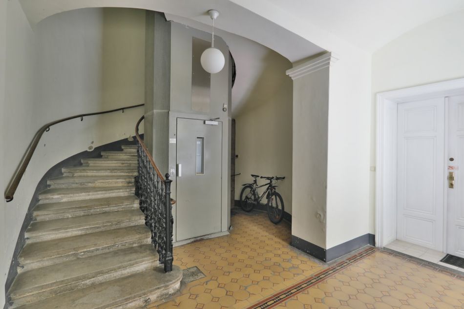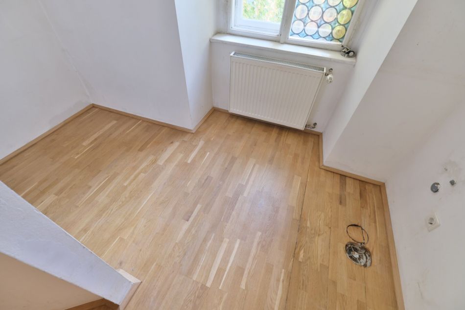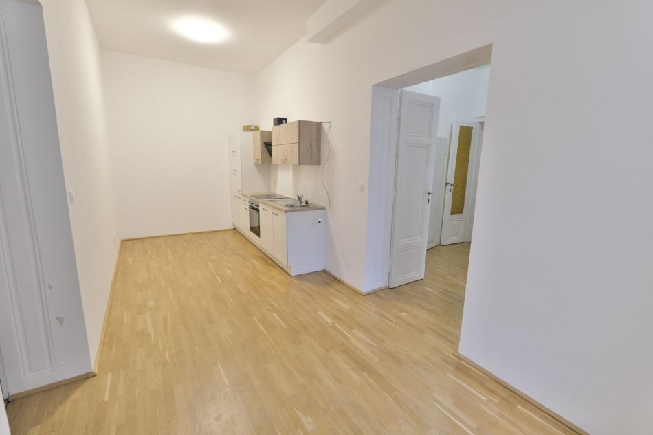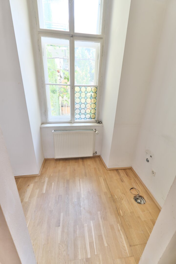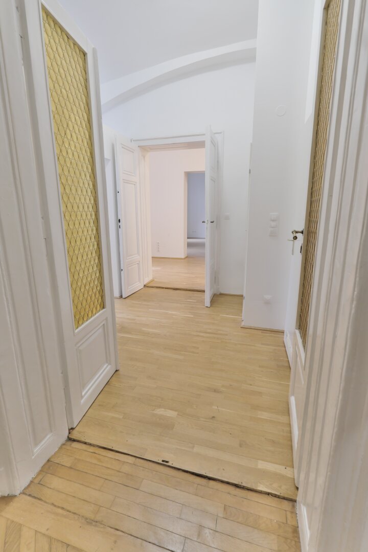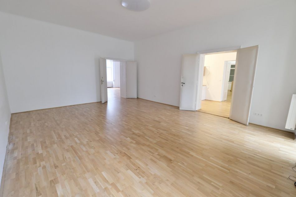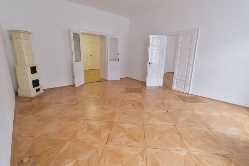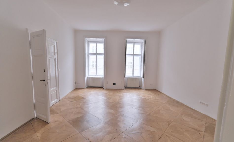 Wiener Altbauflair: 3,55 m Raumhöhen, weisse Flügeltüren, größtenteils Sternparketten (frisch geschliffen und versiegelt) und teilweise neu verlegter Eiche-Parkett.