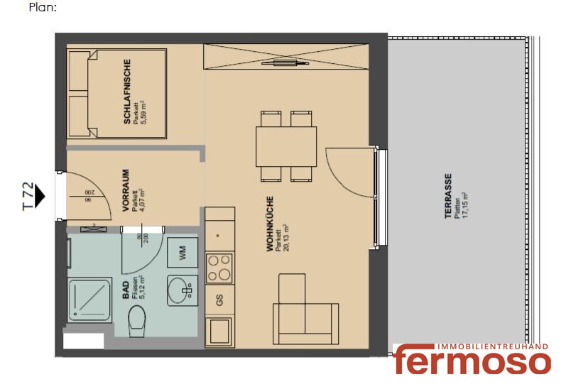 Auf rund 34,91 m² bietet die Wohnung einen gut durchdachten Grundriss, der sich ideal für Singles oder Paare eignet. Hochwertige Materialien wie Parkett- und Fliesenböden sorgen für ein angenehmes Wohngefühl, während die Fußbodenheizung besonders in den kälteren Monaten für zusätzlichen Komfort sorgt.