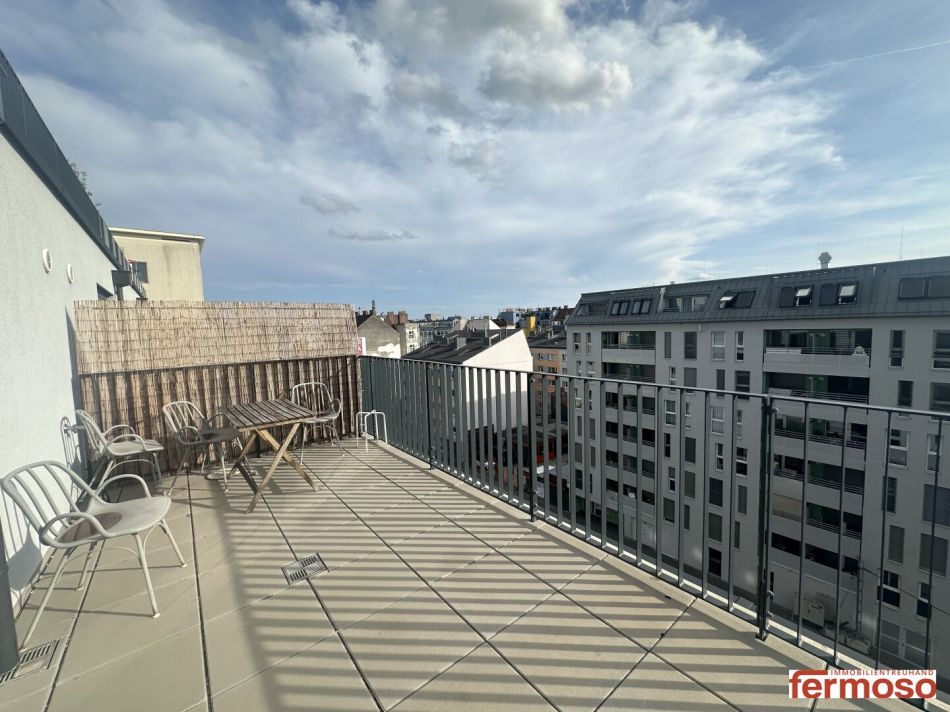 Ein echtes Plus ist die großzügige Terrasse, die zusätzlichen Wohnraum im Freien schafft – perfekt für ein Frühstück an der frischen Luft oder entspannte Abende nach einem langen Tag. Hier lässt sich der Blick über die Stadt genießen und der Alltag kurz vergessen.