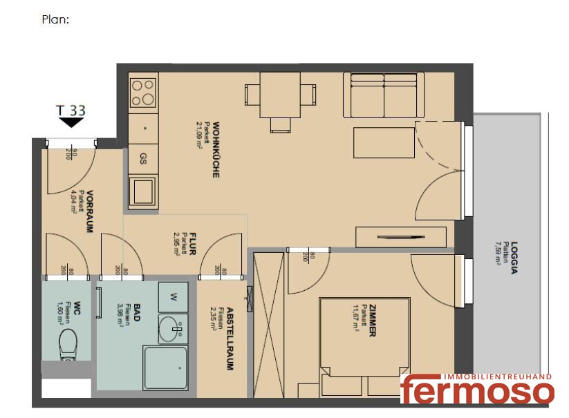 Ein zusätzlicher Pluspunkt ist die Loggia, die den Wohnraum sinnvoll erweitert und sich gut für eine kurze Auszeit im Freien eignet. In der Wohnung wurden Parkett- und Fliesenböden verlegt, die für ein zeitloses und wohnliches Ambiente sorgen. Fußbodenheizung und Fernwärme gewährleisten ein angenehmes Raumklima zu jeder Jahreszeit.