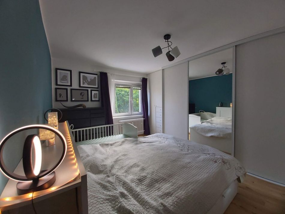 Die Wohnung ist ruhig gelegen und man hört kein Lärm durch die schalldichten Fenster. Das Haus ist ca. 50 Meter von der Straße entfernt, daher kein Autolärm.