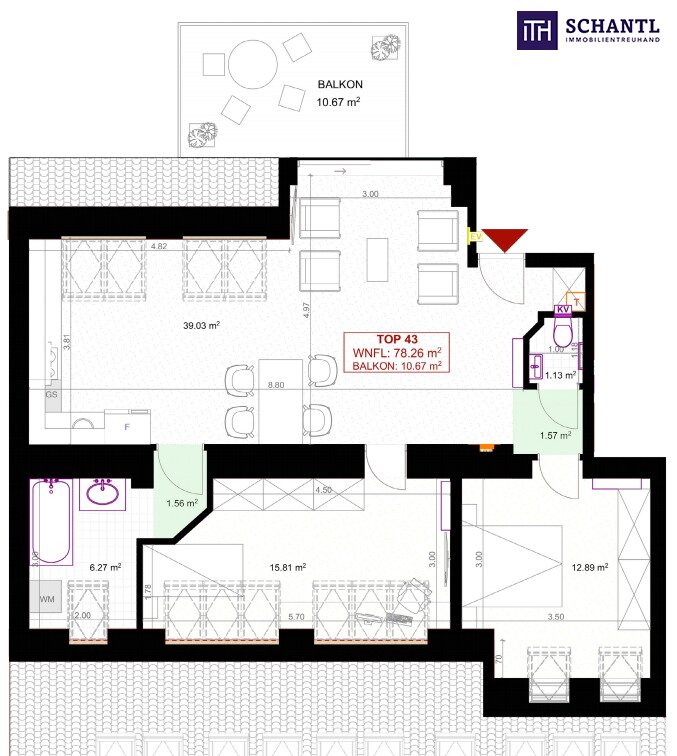 Wohnfläche 78,26 m² + 10,67 m² Balkon