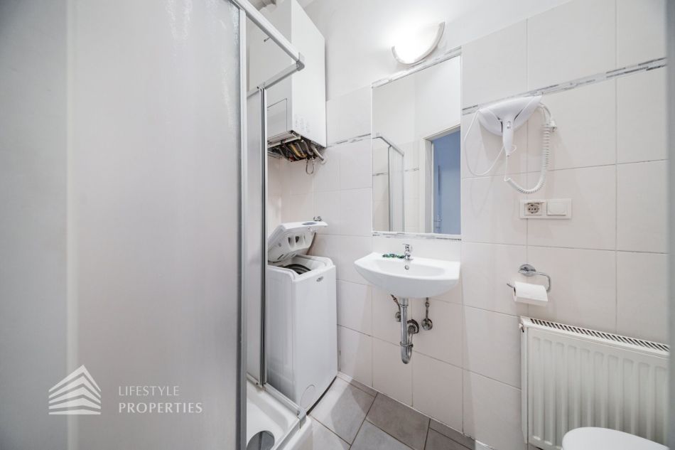 Die Wohnung befindet sich im 2. Liftstock eines gepflegten Altbaus aus dem Jahre 1900 und gliedert in einen Vorraum, einen Wohn- Schlafraum mit Küche und ein Bad. Es wird mittels Gastetagenheizung beheizt.
