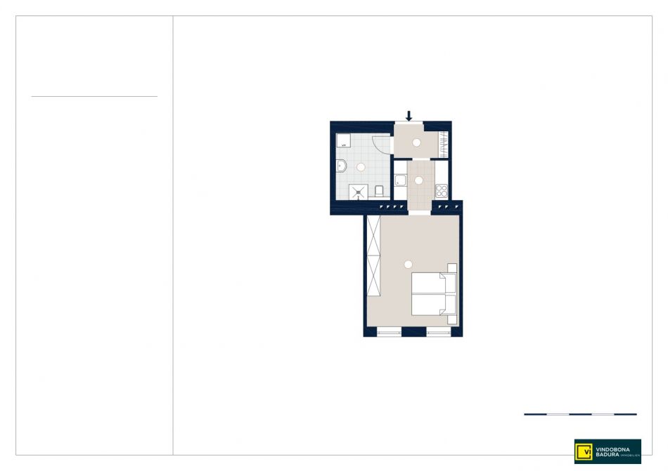 Auf rund 35 m² Wohnfläche im 2. Liftstock erwartet Sie ein durchdachter Grundriss mit Vorraum, modernem Badezimmer mit Dusche und WC, Wohn/Schlafraum sowie Pantryküche.