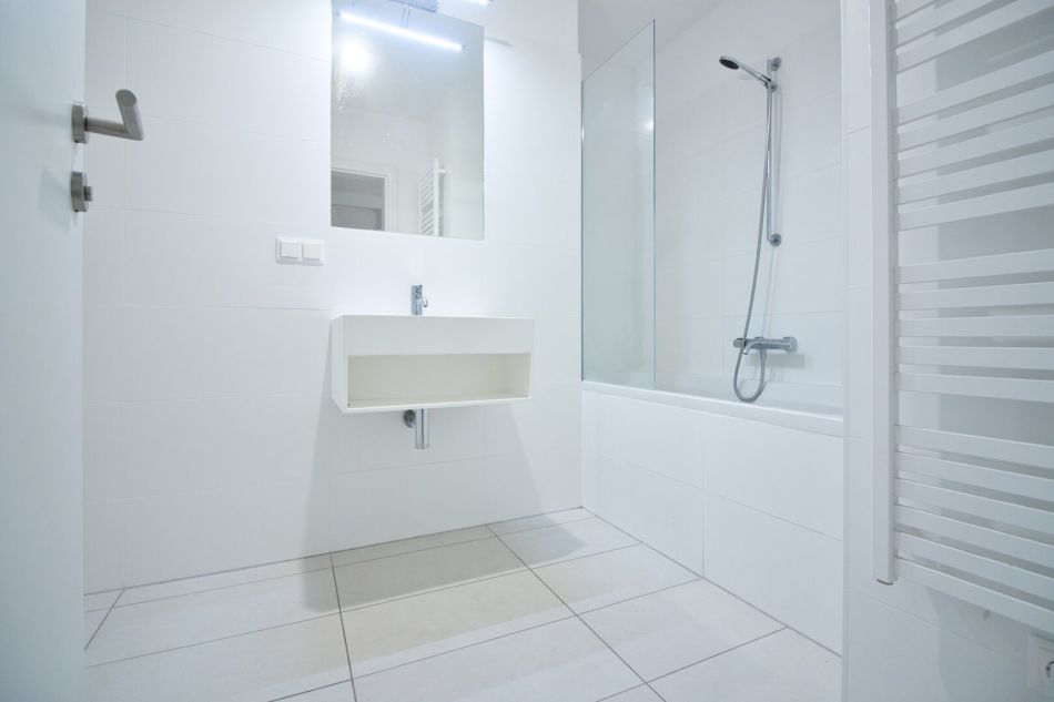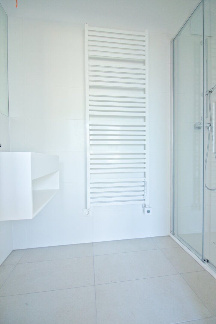 Die Wohnung befindet sich im 1. Liftstock eines modernen Wohnhauses aus dem Jahr 2021. Der Vorraum und der angrenzende Flur bieten ausreichend Platz zum Ankommen und für eine Garderobe. Linker Hand befindet sich ein separates WC mit Handwaschbecken. Rechts sorgt ein Abstellraum für zusätzlichen Stauraum. Geradeaus geht es in ein modernes Badezimmer mit Badewanne, Waschtisch, Handtuchheizkörper und Waschmaschinenanschluss.