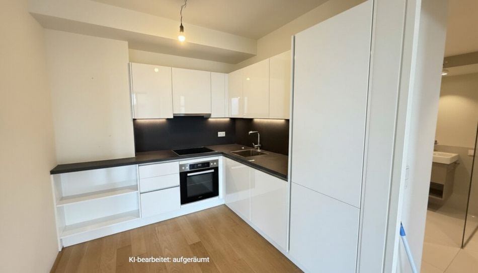 Diverse Fotos stammen von nebenliegenden oder ähnlichen Wohnungen und dienen daher als gute Veranschaulichung und bieten gleichzeitig die Möglichkeit zum Vergleich! Zimmeraufteilung und Ausblick entsprechen den Fotos. Aufgrund der niedrigeren Stockwerkslage fällt der Blick jedoch etwas anders aus als auf den abgebildeten Aufnahmen aus einem höheren Stockwerk.