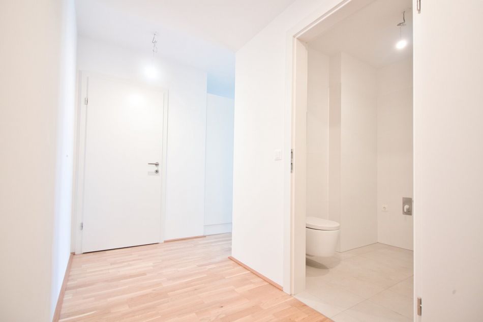 Die Wohnung befindet sich im 3. Liftstock eines modernen Wohnhauses aus dem Jahr 2021. Der großzügige Flur bietet ausreichend Platz zum Ankommen. Gegenüber vom Eingang befindet sich das zeitgemäß ausgestattete Badezimmer mit verglaster Dusche, Waschtisch, Handtuchheizkörper, WC und Waschmaschinenanschluss. Ein Abstellraum sorgt für zusätzlichen Stauraum. Der angrenzende Wohnraum ist hell, freundlich und mit einer modernen L-förmigen Einbauküche ausgestattet. Von hier aus gelangt man auf den ca. 4 m² großen Balkon – ein ruhiger Rückzugsort mit Blick ins begrünte Innenareal. Das Schlafzimmer ist direkt vom Wohnbereich aus begehbar.