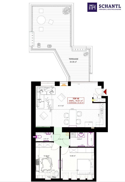 Wohnfläche 78,81 m² + 34,35 m² Terrasse