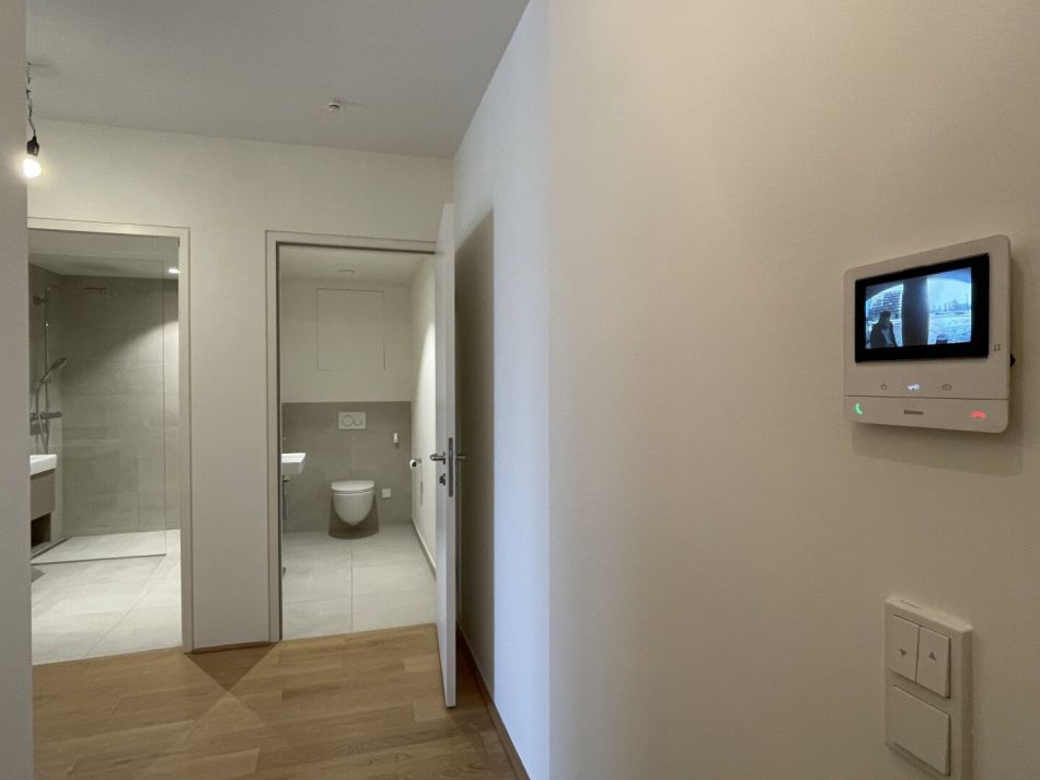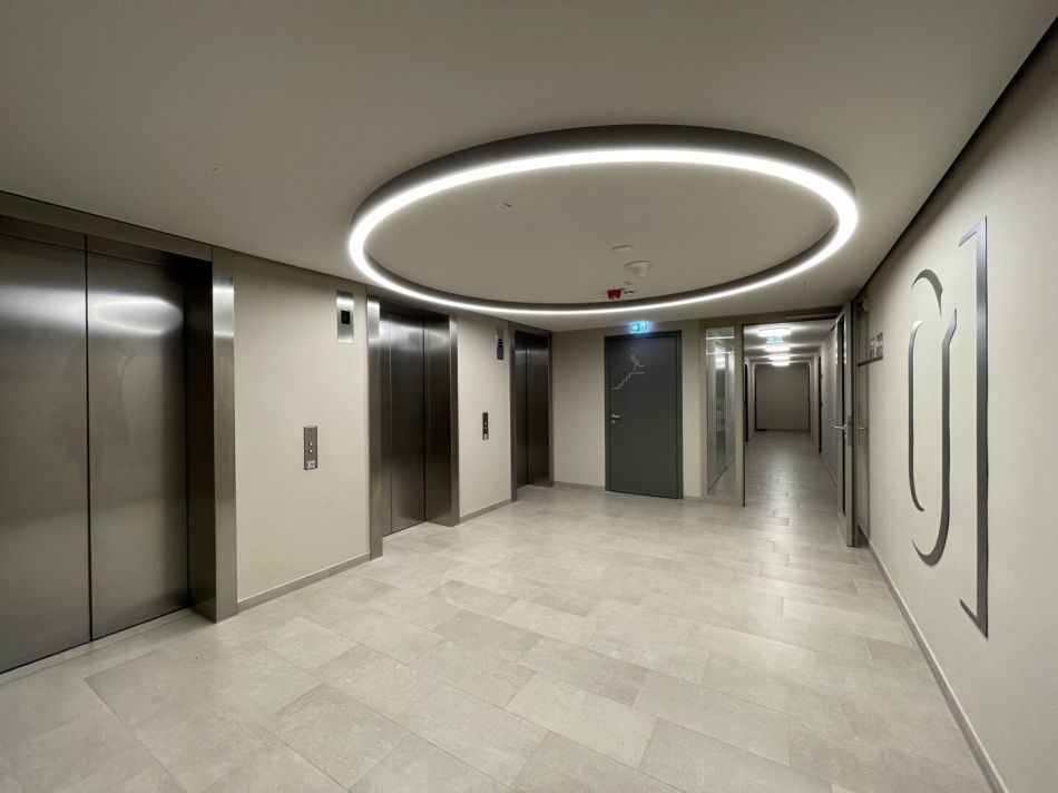 Erleben Sie eine erstklassige Wohnatmosphäre mit Annehmlichkeiten wie einem sicheren Fahrrad- und Kinderwagenraum, einem modernen Fitnessbereich und einem vielseitigen Eventraum. Die Lobby ist mit fortschrittlicher Kameraüberwachung ausgestattet und sorgt damit für höchste Sicherheit im Gebäude. Zudem machen die Renz-Box Paketempfangsanlagen im Eingangsbereich die Lieferungen sehr bequem.