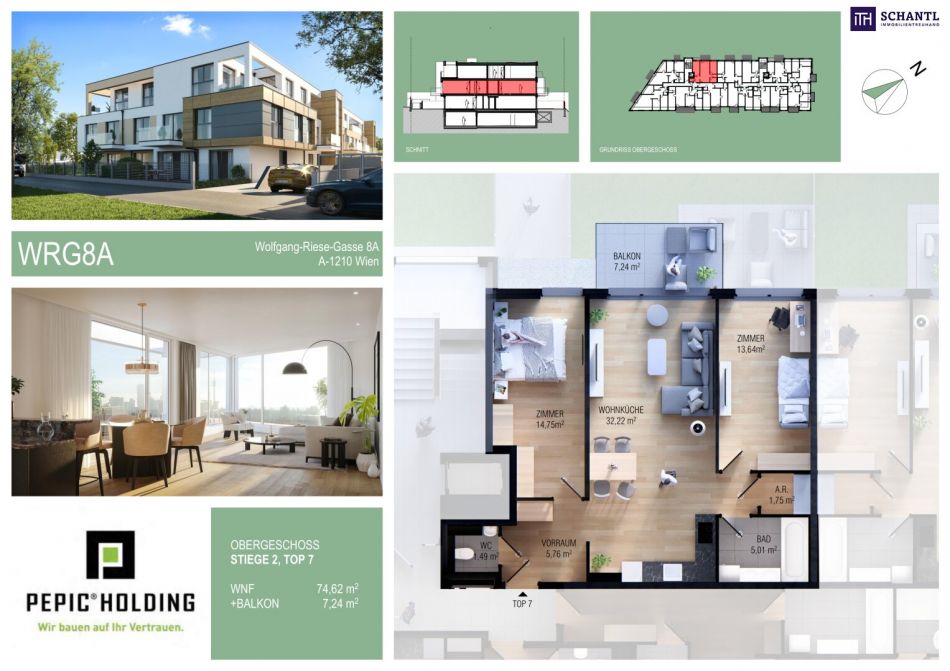 NEUES WOHNGLÜCK in Floridsdorf + TOP 2/7 + moderne Erstbezugswohnungen + exklusive Ausstattung + Luftwärmepumpe + Deckenkühlung
