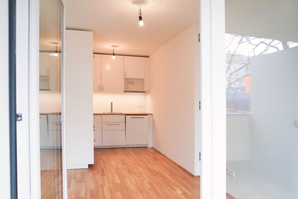 Die Wohnung besticht durch einen modernen Grundriss und teilt sich ein ein helles und großzügig angelegtes Wohnzimmer mit Wohnküche, Schlafzimmer, Bad mit Badewanne, getrenntes WC und einem Abstellraum auf. Die Ausstattung ist - dem Baujahr entsprechend - modern und hochwertig und lässt von Fußbodenheizung, Fenster mit 3-fach Verglasung, Terrassendielen aus Lärche wenig zu wünschen übrig. Technisch verfügt das Haus unter anderem auch über eine hauseigene SAT-Anlage, Videogegensprechanlage uvm. Highlight ist eine ca. 5 m² große Loggia mit Blick in einen begrünten Innenhof!