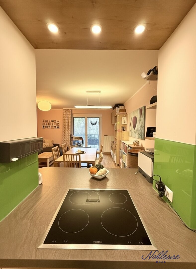 Mit insgesamt 4 Zimmern, ist diese Wohnung ideal für Familien oder Personen, die Wert auf eine durchdachte Raumaufteilung und eine ruhige, familiäre Umgebung legen. 2015 wurde die gesamte Wohnung saniert und unter anderem die Elektro- sowie die Wasserleitungen erneuert. In sämtlichen Räumen befindet sich Parkettboden, im Vorraum, der Küche sowie im Bad sind Fliesen verlegt worden. Die moderne Einbauküche verfügt über eine Durchreiche ins Wohnzimmer, die das familiäre Wohnkonzept abrundet. An sonnigen Tagen entspannen Sie sich auf dem Balkon von welchem Sie einen wunderbaren Ausblick in den grünen Gemeinschaftsgarten haben. Die aktuellen Kinderzimmer sind Nord-Ostseitig ausgerichtet und bieten einen Blick über das Wiental - Ein Highlight zum Silvesterfeuerwerk.