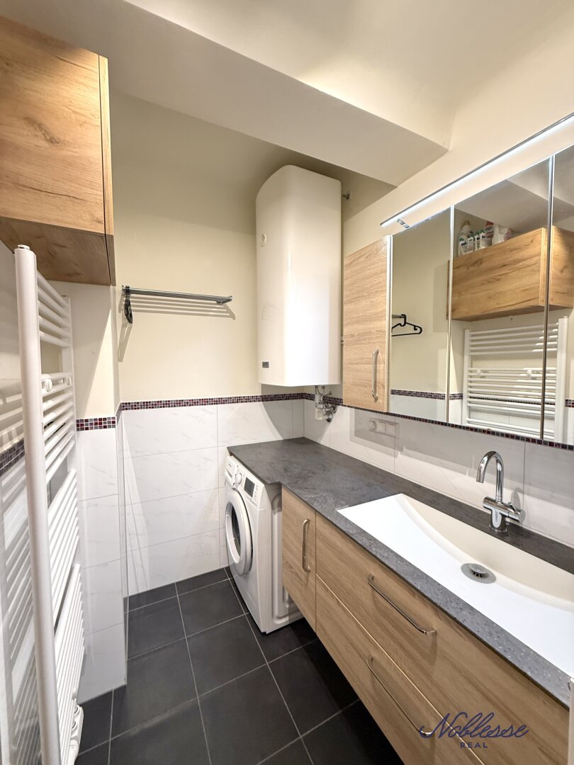 - Innenliegendes Bad mit Dusche, Waschtisch, Waschmaschienanschluss und Elektroboiler für die Warmwasserversorgung