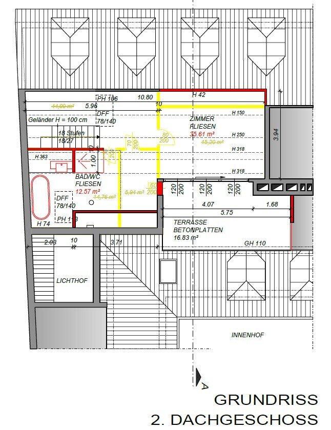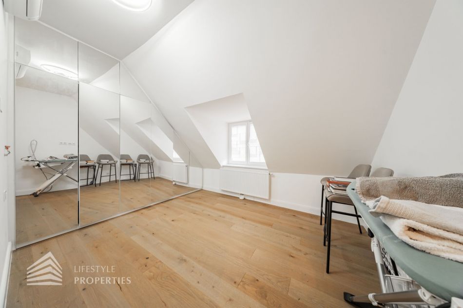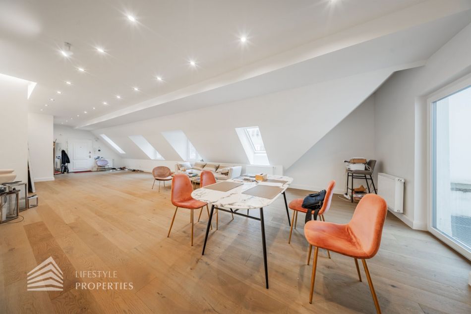 Die traumhafte Wohnung befindet sich im 1. und 2. Dachgeschoss eines gepflegten Altbaus und erstreckt sich über eine großzügige Wohnfläche von ca. 175 m². Diese teilt sich auf in eine Wohnküche, 3 Zimmer, 2 Badezimmer, ein Gäste-WC sowie einen praktischen Abstellraum. Eine Terasse sowie ein charmanter Balkon runden das Angebot perfekt ab. In den Wohnräumen wurde edles Parkett verlegt, die Nassräume sind mit modernen Fliesen ausgestattet. Beheizt wird mittels Gasetagenheizung. Eine kühle Atmosphäre an warmen Sommertagen garantiert die installierte Klimaanlage.