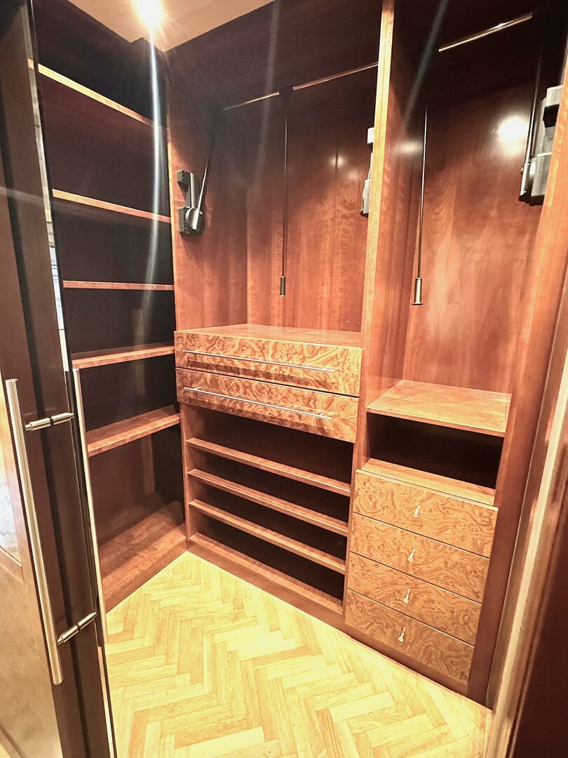 Luxuriöse, tischlergefertigte begehbare Garderobe: