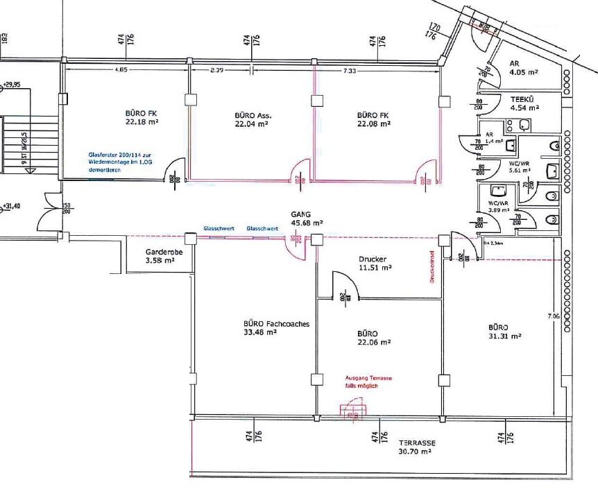 Das Büro befindet sich im 2. Liftstock eines im Jahre 1970 erbauten Gebäudes, welches 2010 komplett umgebaut wurde. Es überzeugt mit einer unglaublichen Nutzfläche von ca. 233 m², welche sich auf 6 großzügige Büroräume, sowie auf eine praktische Teeküche, zwei Abstellräume und Sanitäranlagen aufteilt. Das zusätzliche Highlight, die ca. 31 m² große Terrasse, rundet das Angebot perfekt ab. Beheizt und gekühlt wird mittels Gebläsekonvektoren. Eine Tiefgarage sorgt für sorgenfreies Parken mit Ihrem PKW.
