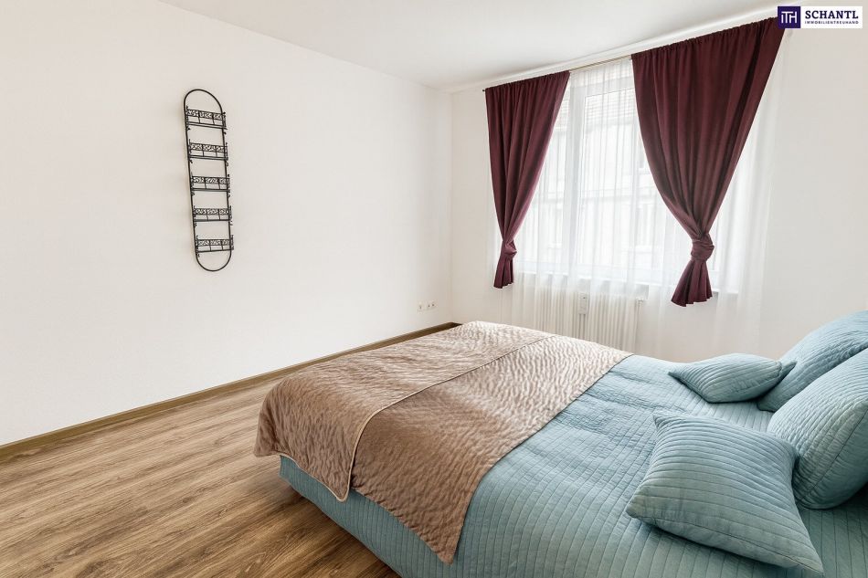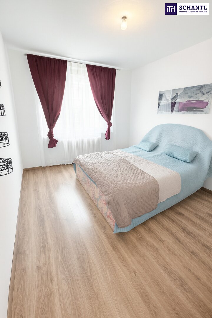 Richtung Innenhof, angenehm ruhig – ideal als Schlafzimmer mit Platz für ein großes Bett und Schrank.