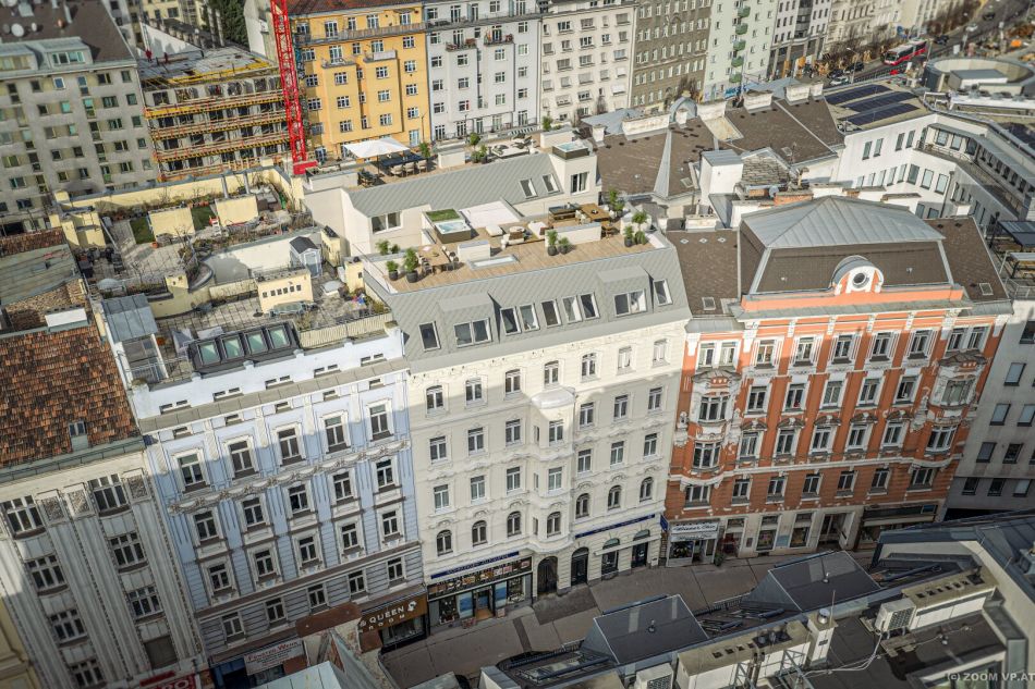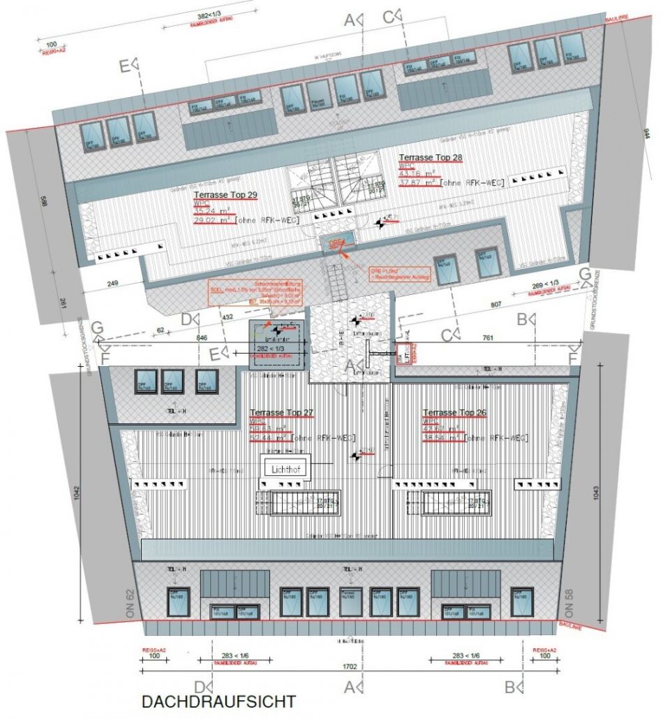 Die beigelegte Einreichplanung sieht einen Dachgeschossausbau mit 4 Wohneinheiten vor, wodurch eine Wohnfläche von ca. 279 m² erzielt werden könnte. Zusätzlich ist zu jeder Wohneinheit eine Dachterrasse geplant.