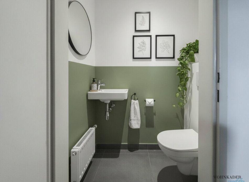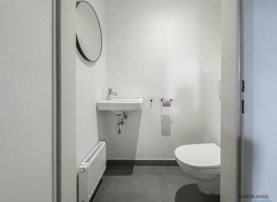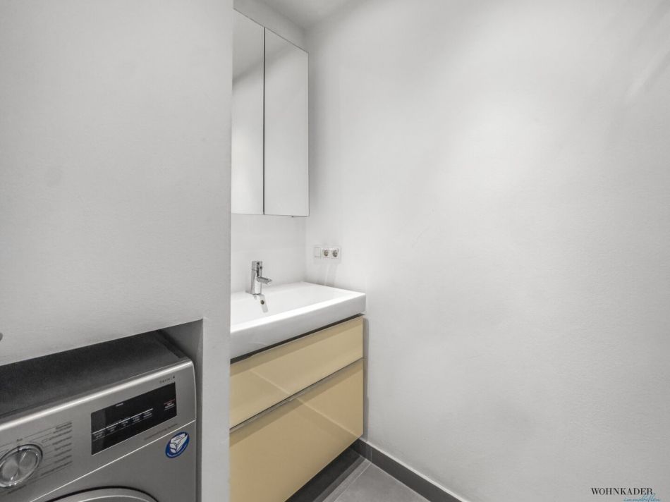 Die neuwertige Küche ist vollständig ausgestattet und bietet alles, was man im Alltag benötigt. Das Badezimmer verfügt über eine Dusche, ein Waschbecken und eine Waschmaschine, während das separate WC zusätzlich mit einem Handwaschbecken ausgestattet ist. Ein praktischer Abstellraum sorgt für zusätzlichen Stauraum und Ordnung.