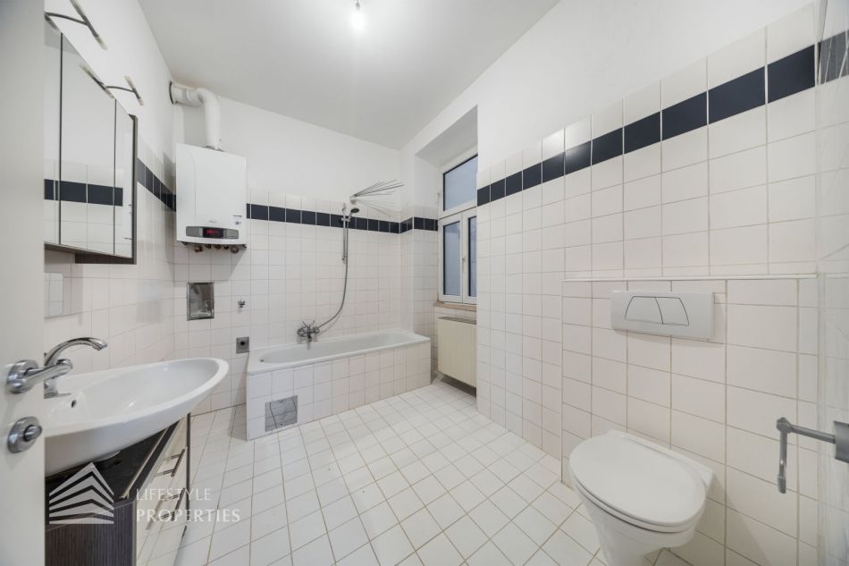Beim Betreten gelangt man in einen rund 7 m² großen Vorraum, der ausreichend Platz für Garderobe und Stauraum bietet und alle Räume zentral erschließt. Rechterhand befindet sich das großzügige Badezimmer mit ca. 7 m², ausgestattet mit Badewanne, WC und Handwaschbecken. Ein Fenster sorgt hier für angenehmes Tageslicht und natürliche Belüftung. Weiterführend öffnet sich die Wohnküche mit ca. 24 m², die als Herzstück der Wohnung fungiert. Die bereits vorhandene Küchenzeile fügt sich funktional in den Raum ein und schafft ideale Voraussetzungen für modernes Wohnen und gesellige Abende. Vom Wohnbereich aus, gelangt man in das ruhig gelegene Schlafzimmer mit ca. 12 m², das durch seine Lage im hinteren Bereich der Wohnung einen angenehmen Rückzugsort bietet.