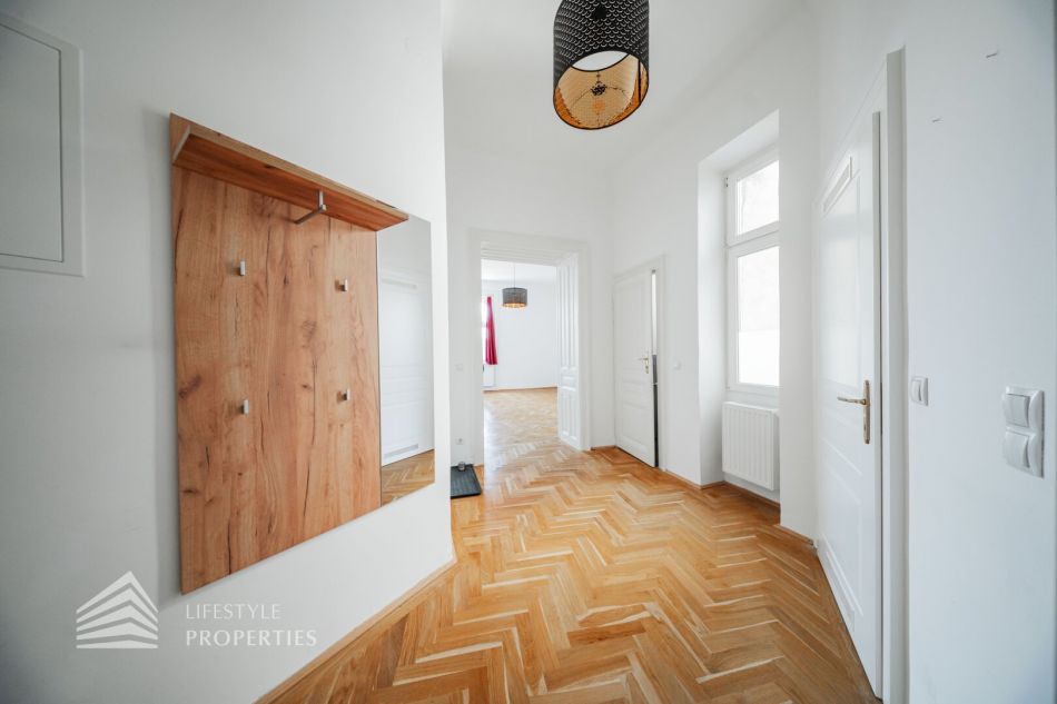 Die Wohnung befindet sich im 4. Stock eines schönen Stilaltbaus aus dem Jahr 1897 und gliedert sich in einen Vorraum, ein Wohnzimmer, ein Zimmer, eine Küche, ein Badezimmer und ein separates WC.