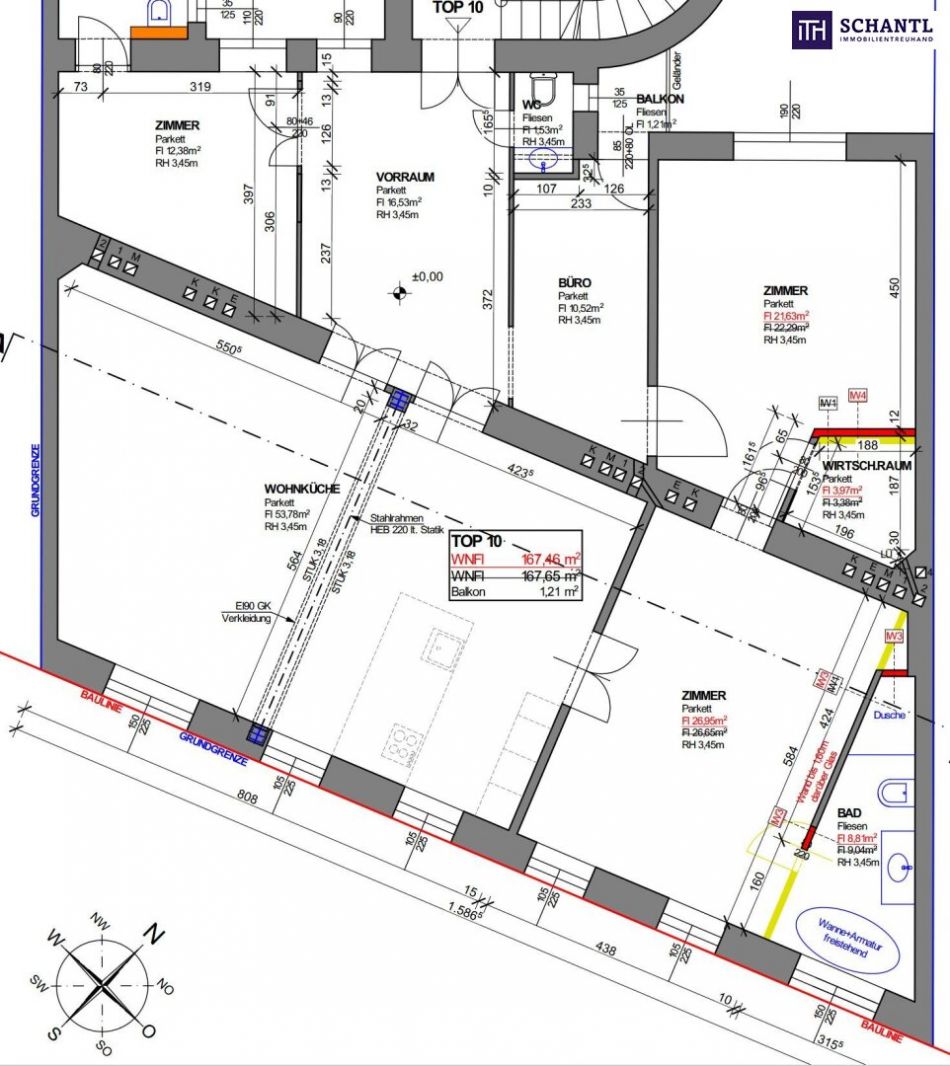 Wohnfläche: ca. 167,46m² + Balkon: ca. 1,21m² + Kellerabteil: ca. 5,39m²