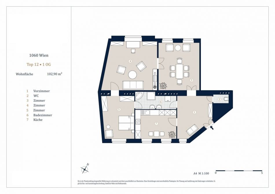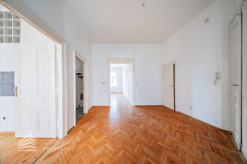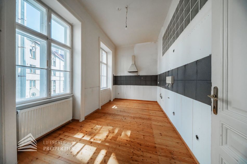 Die Wohnung befindet sich im 1. Stock eines schönen Stilaltbaus aus dem Jahr 1897 und gliedert sich in einen Vorraum, eine Küche, drei Zimmer, ein Badezimmer und ein separates WC.
