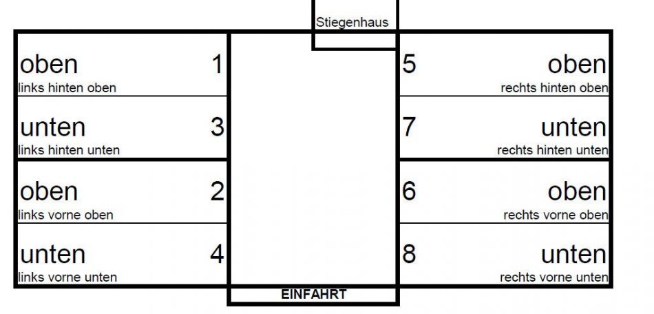 Der Stellplatz 6 rechts oben ist für SUV geeignet und ab sofort verfügbar.