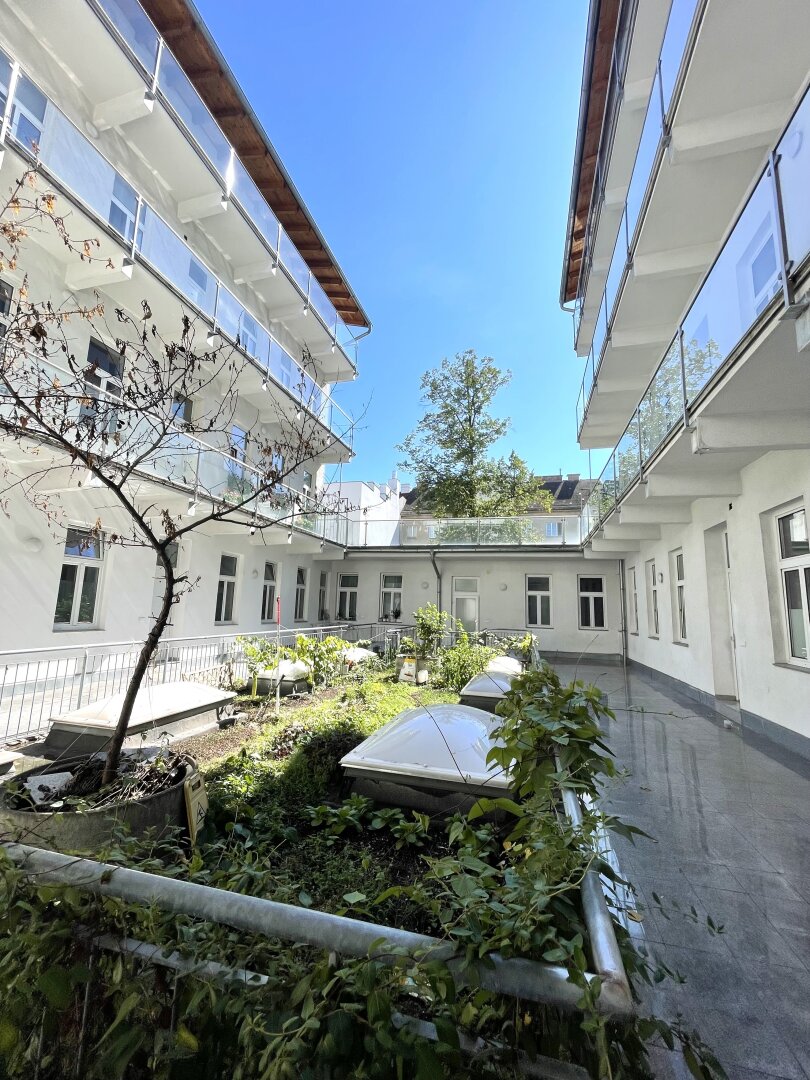 Im Innenhof befindet sich ein überdachter Fahrradabstellbereich und der Wohnung ist ein eigenes Kellerabteil zugeordnet.