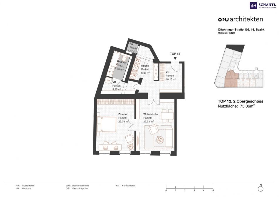 Wohnfläche: ca. 75,06m² + Kellerabteil: 3,47m²