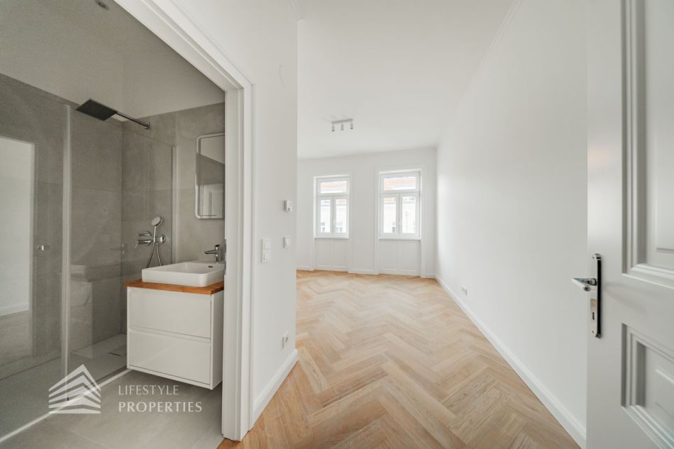 Die Wohnung ist ein Erstbezug, verfügt über ca. 47 m² und befindet sich im 3. Stock eines schönen Altbaus und gliedert sich in eine Wohnküche, ein Zimmer, einen Abstellraum, ein Badezimmer und ein separates WC. Die Wohnräume sind mit schönem Parkettboden ausgestattet, Bad und WC sind verfliest.