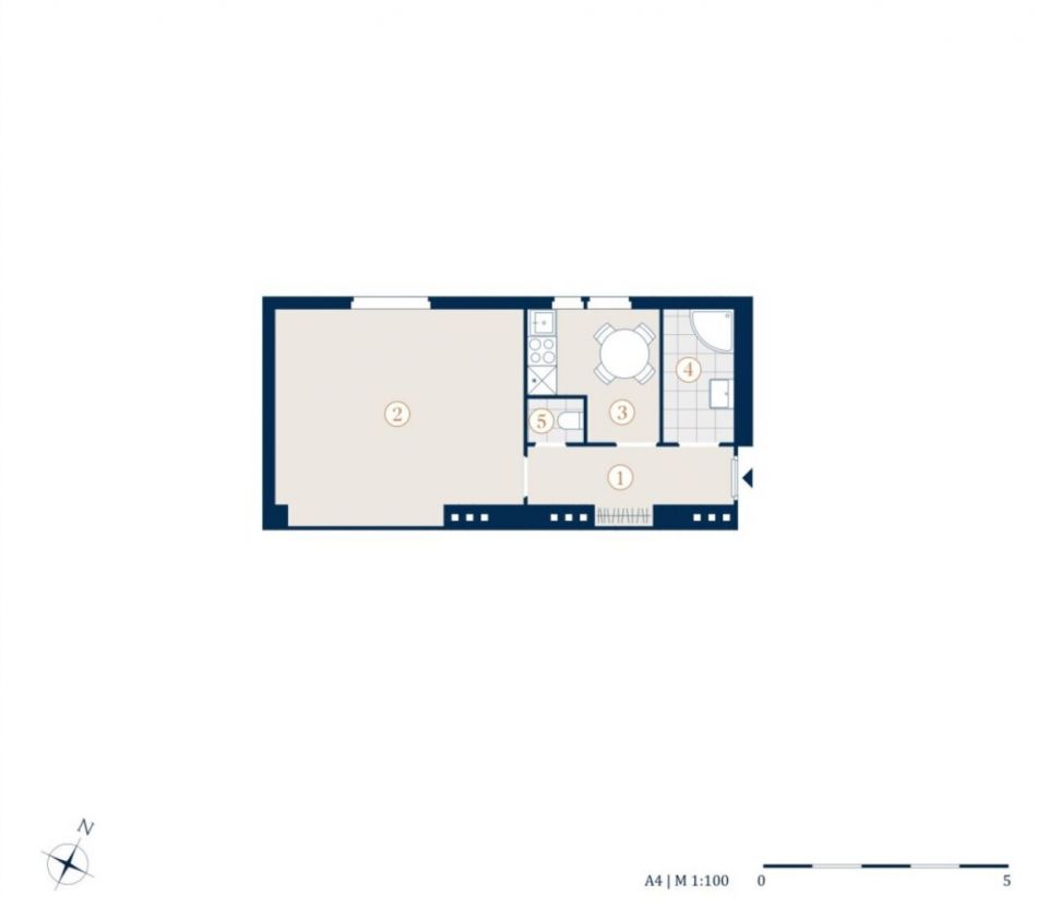 Sie betreten die Wohnung und befinden sich im Vorraum. Gerade durch gelangen Sie in den Wohn- Schlafraum. Des Weiteren gelangen Sie vom Vorraum in die voll ausgestattete Küche und in das Bad. Dieses ist mit einer Dusche und einem Waschbecken ausgestattet. Das separate WC ist auch vom Vorraum erreichbar.