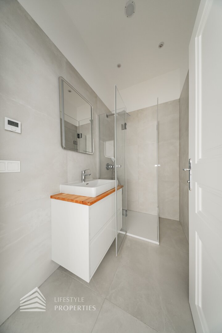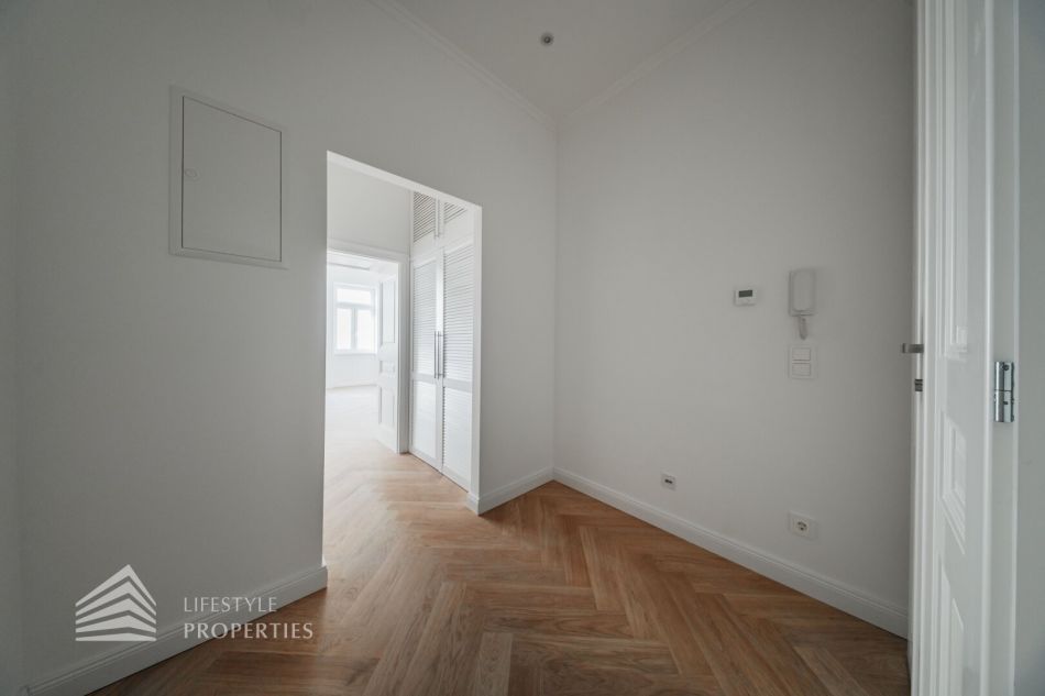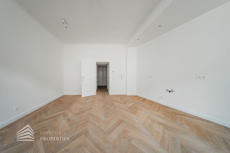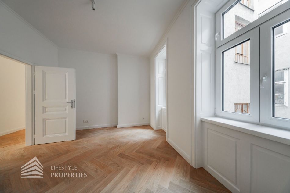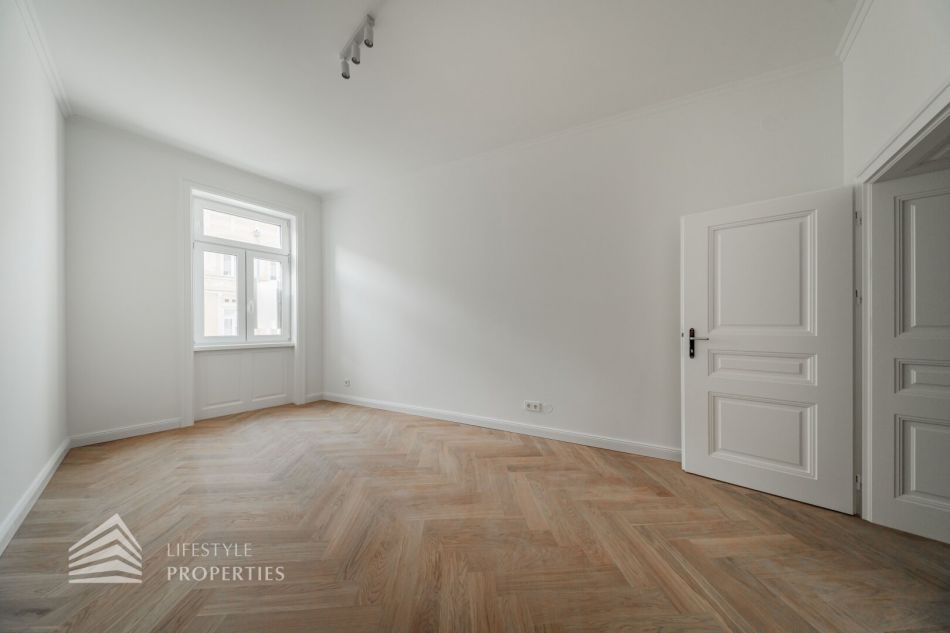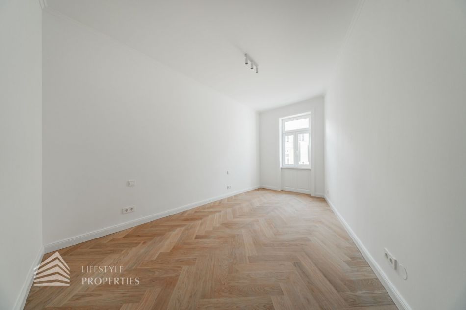 Die Wohnung ist ein Erstbezug, verfügt über ca. 73 m², befindet sich im 2. Stock eines schönen Altbaus und gliedert sich in einen Vorraum, zwei Zimmer, eine Wohnküche, ein Badezimmer und ein separates WC. Die Wohnräume sind mit schönem Parkettboden ausgestattet, Bad und WC sind verfliest. Beheizt wird mit Fußbodenheizung.