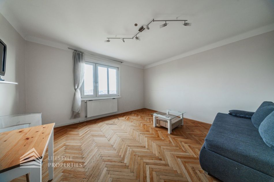 Sie verfügt über ca. 52 m² Wohnfläche und befindet sich im 4. Stock eines im Jahr 1936 erbauten Altbaus. Die Wohnung gliedert sich in einen Vorraum, einen Wohnraum, ein Schlafzimmer, eine Küche, ein Badezimmer und ein separates WC. Die Wohnräume sind mit Fischgrätparkett ausgestattet. Beheizt wird mittels Gas-Etagenheizung.