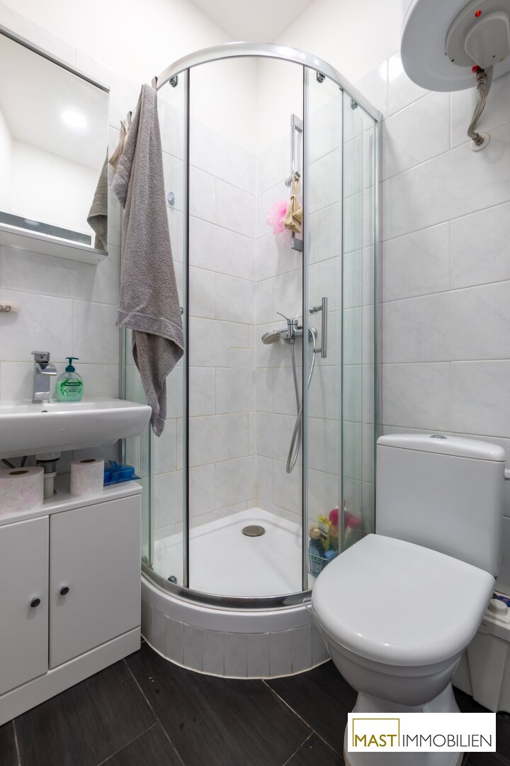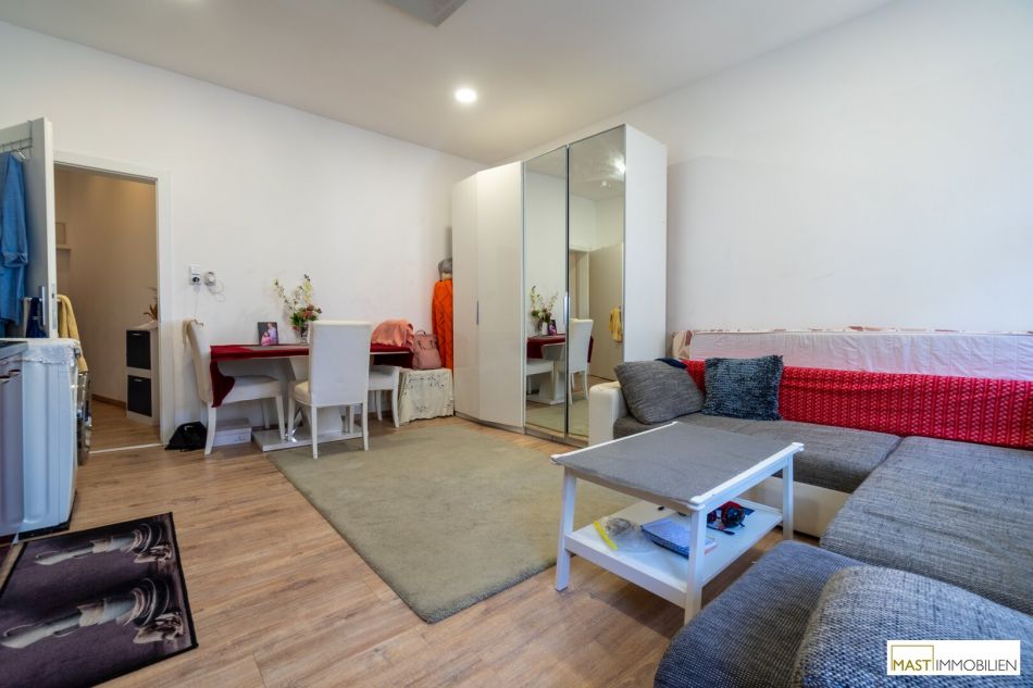 Nach Eintritt in die Wohnung gelangen Sie ins Vorzimmer mit ausreichend Platz für Ihre Garderobe (hinter der Eingangstür). Das Badezimmer verfügt über eine Dusche, WC & Waschbecken. Das Wohn- Schlafzimmer wurde mit einer Küche inkl. Geräte ausgestattet. Selbstverständlich beinhaltet der Kaufpreis ein Kellerabteil.