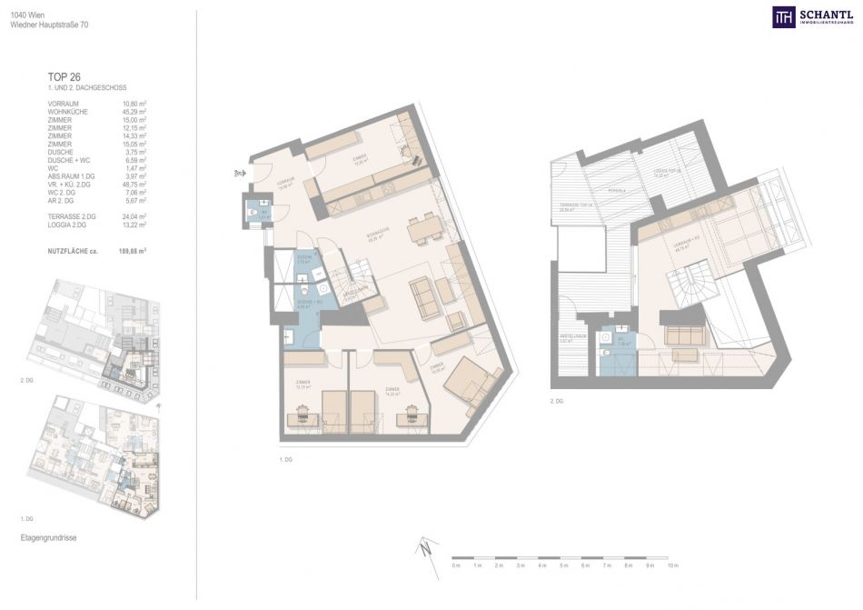 Wohnfläche: ca. 189,88m² + Terrasse: ca. 24,04m² + Loggia: ca. 13,22m² + Kellerabteil