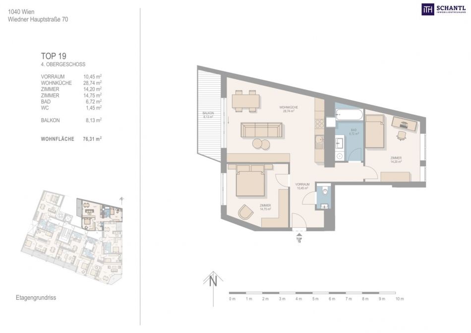 Wohnfläche: ca. 76,31m² + Balkon: ca. 8,13m² + Kellerabteil