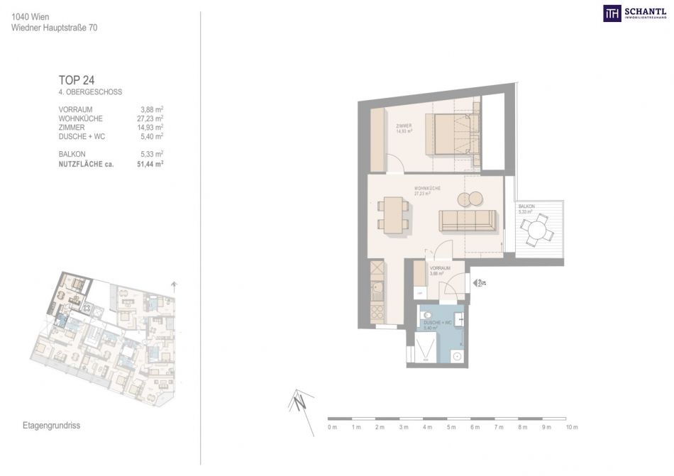 Wohnfläche: ca. 51,44m² + Balkon: ca. 5,33m² + Kellerabteil