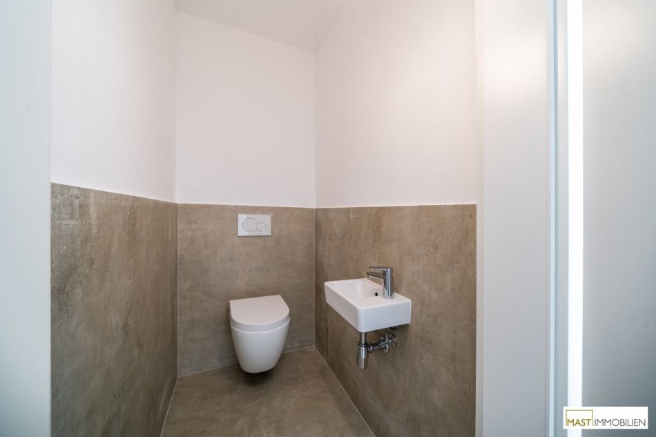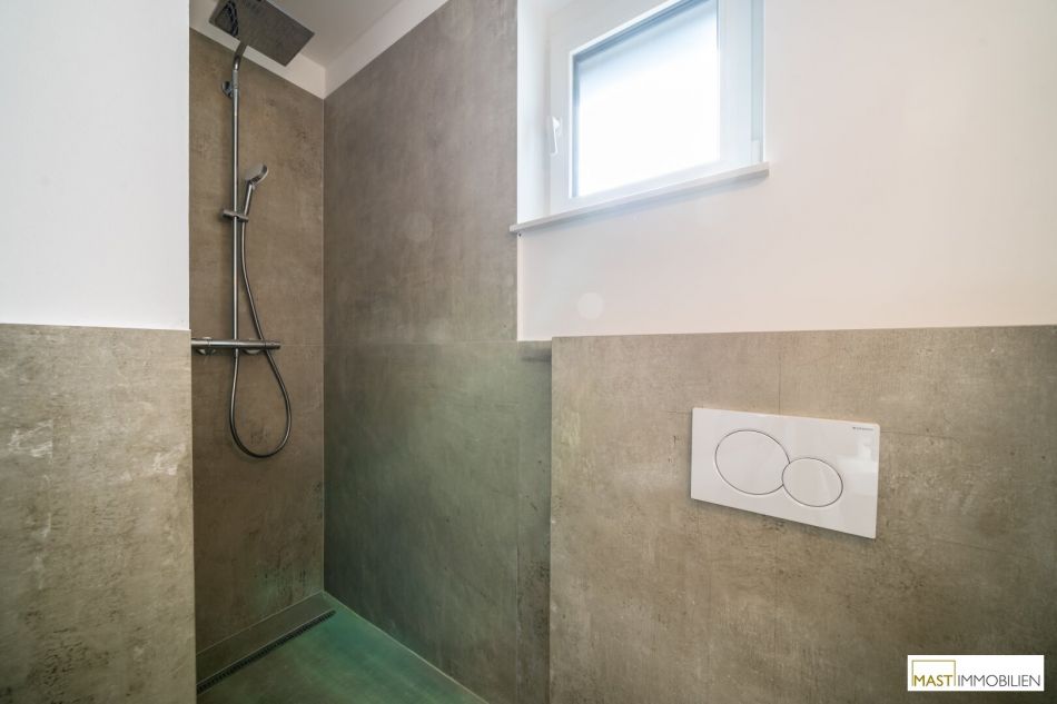 moderne, großformatige Fliesen in den Sanitärräumen