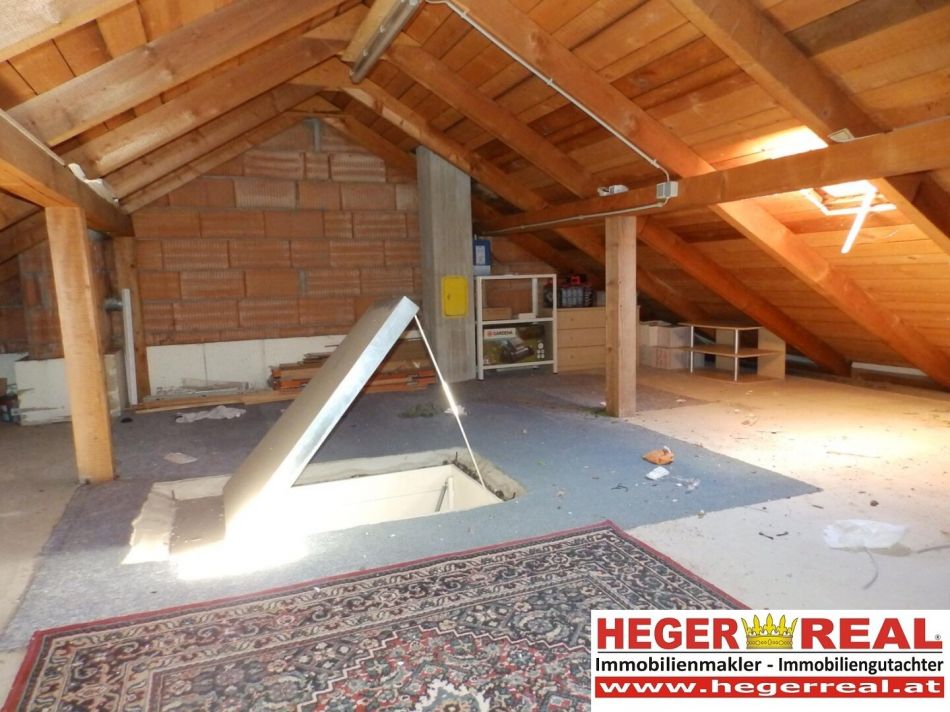 Erdgeschoss (ca. 40m²): überdachter Eingangsbereich mit Platz für eine Sitzgelegenheit und ein von außen begehbarer Abstellraum mit Fenster, Vorraum mit Garderobenverbau, südseitiges geräumiges Wohn-Esszimmer mit Kaminanschluss und Ausgang auf die überdachte Süd-Terrasse (mit Sonnenmarkiese) und weiter in den Garten, Küche voll möbliert inklusive aller E-Geräte offen zum Wohnzimmer, gefliestes WC, 1 Abstellraume (unter der Stiege)Dachgeschoss (ca. 60m²): Vorraum, gefliestes Badezimmer mit Fenster, Badewanne mit Duschvorhang, WC, Waschbecken und Warmwasserboiler mit 145 Liter (mittels Fernwärme), 1 Zimmer mit Ausgang auf den Balkon, noch 2 weitere Zimmer davon eines mit Zugang zum geräumigen Schrankraum mit Fenster