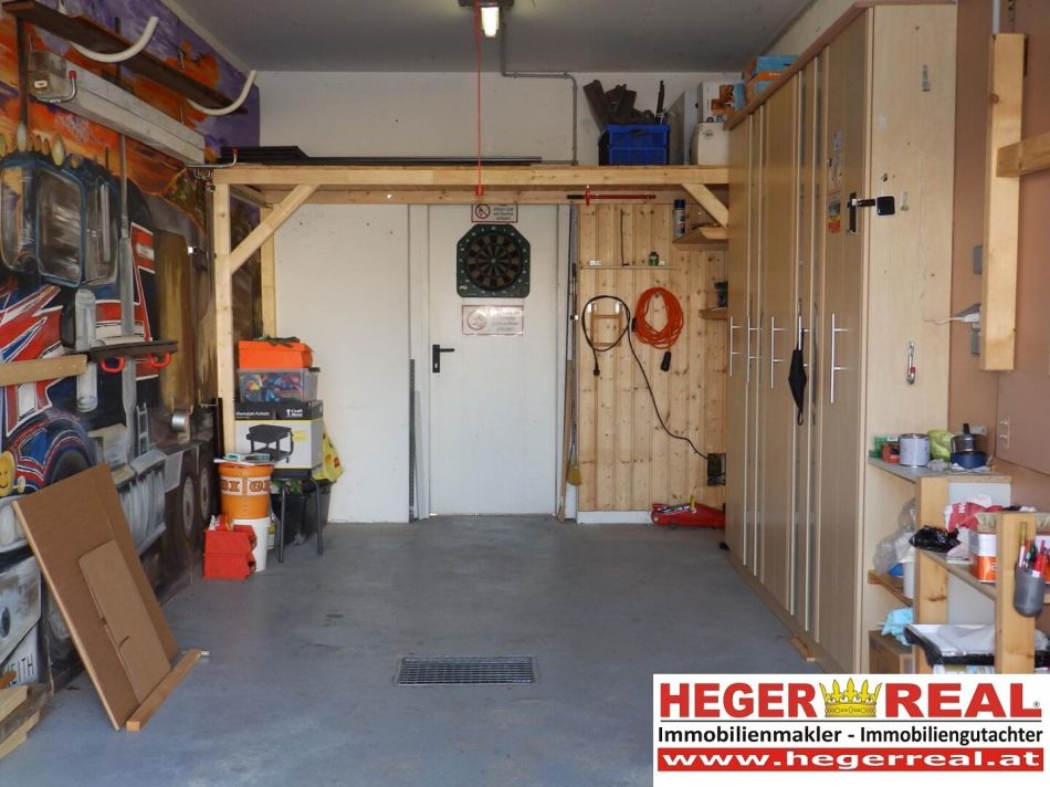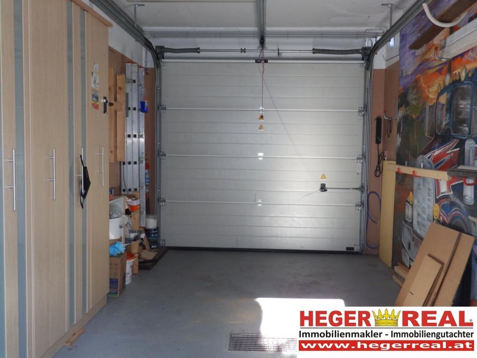 Garage (ca. 17,58m²): mit elektrischem Tor und Türe in den Garten, sowie ein weiterer KFZ-Stellplatz im Eigentum