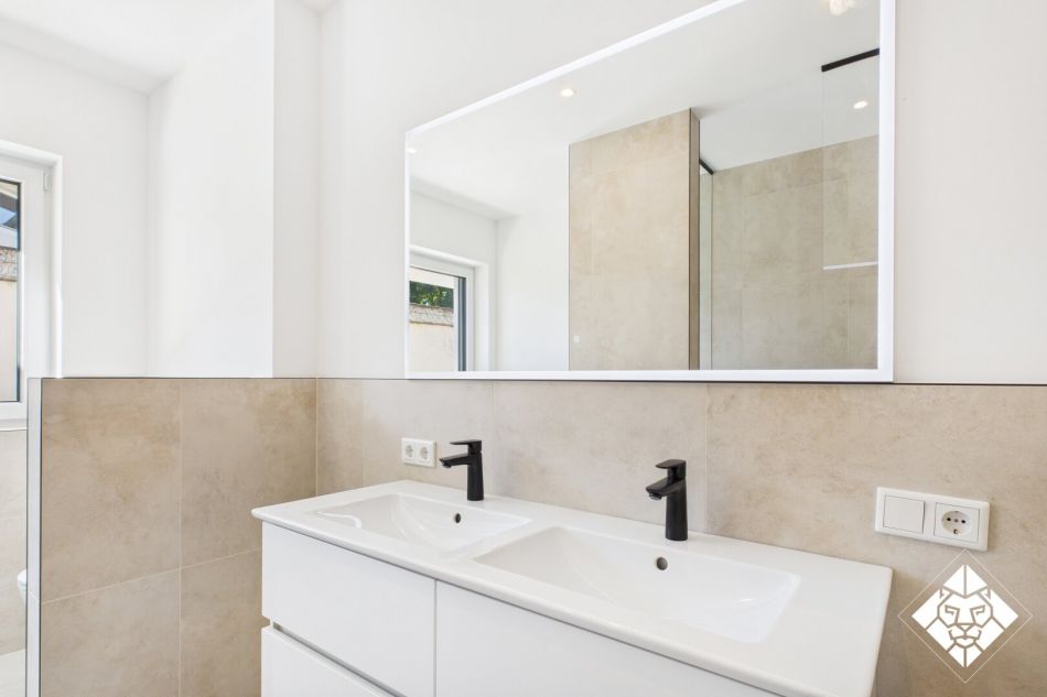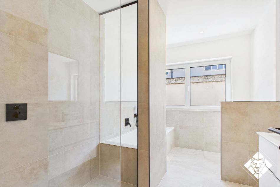 - Bad mit Wohlfühlfaktor: Badewanne + bodengleiche Dusche + Doppelwaschtisch mit Aussicht