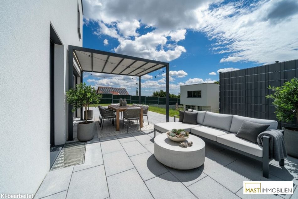Absolute Besonderheit ist neben der großzügigen Wohnfläche auch die moderne Gestaltung und exklusive Ausstattung des Hauses.