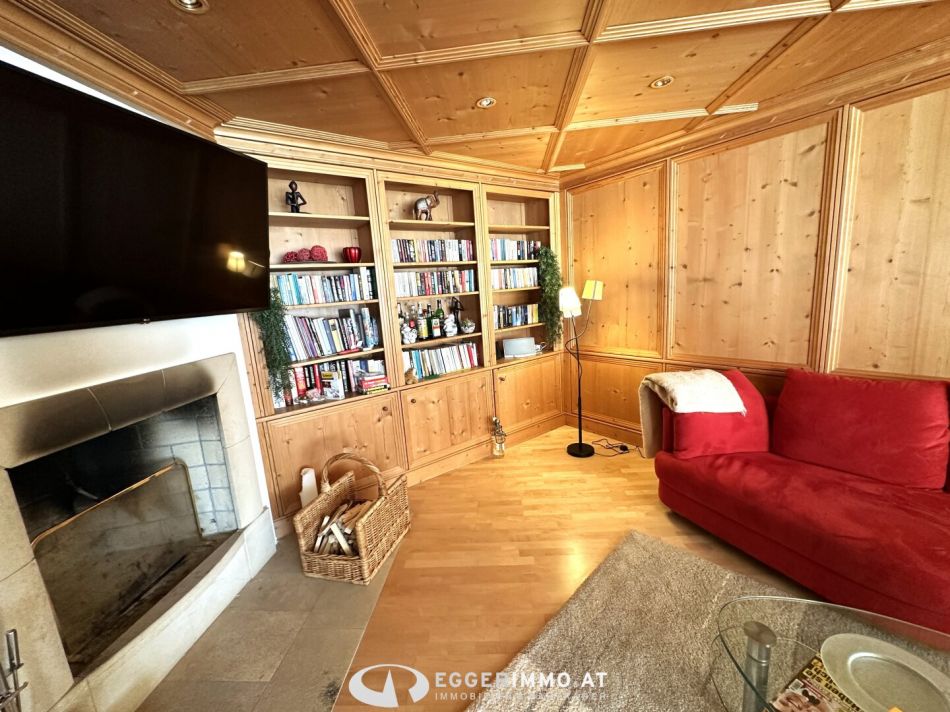 Im Wohnzimmer gibt es einen gemütlichen, mit Holz verkleideten Raum der als Bibliothek bzw Fernsehraum genützt wird. Ein offener Kamin ist auch vorhanden.