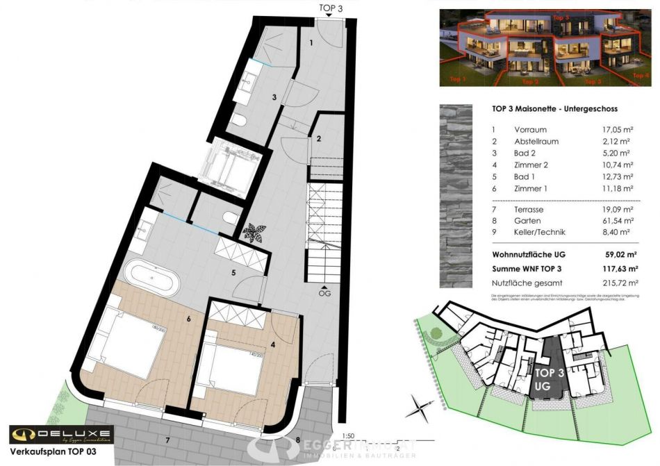 - Hochwertige Ausführung vorgesehen: stockbündige Innentüren, verdeckte Beschläge, Großformat-Feinsteinfliesen, edle Sanitärlösungen