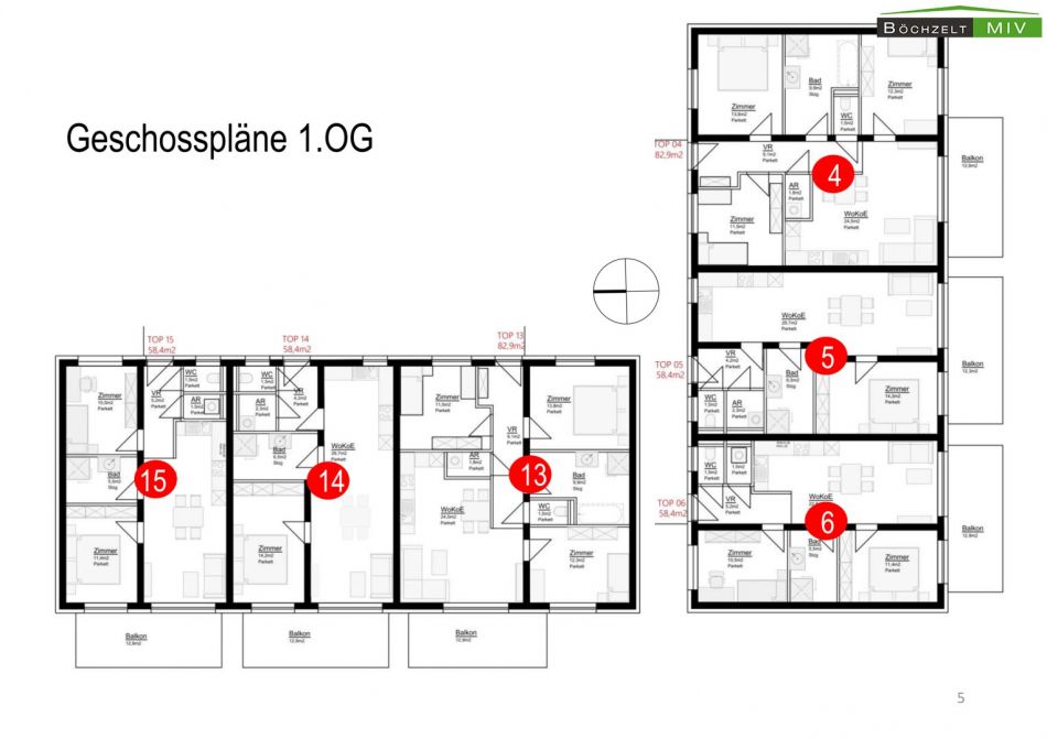 - Heizung: Gastherme je Einheit, Fußbodenheizung in allen Räumen