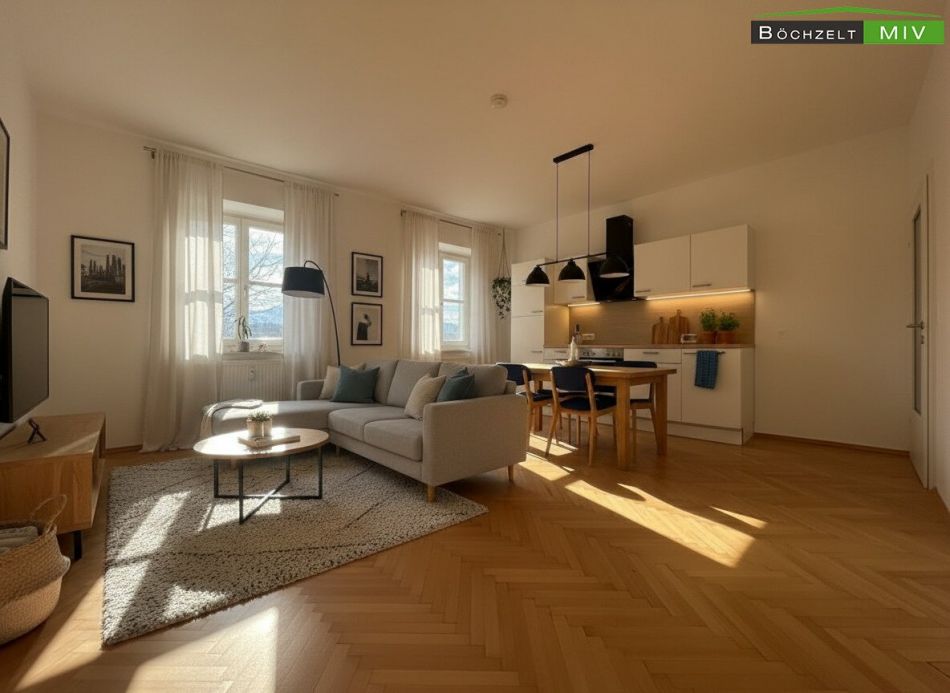 Bitte beachten Sie: Die dargestellte Möblierung wurde mittels KI generiert und ist nicht Bestandteil des Objektes!